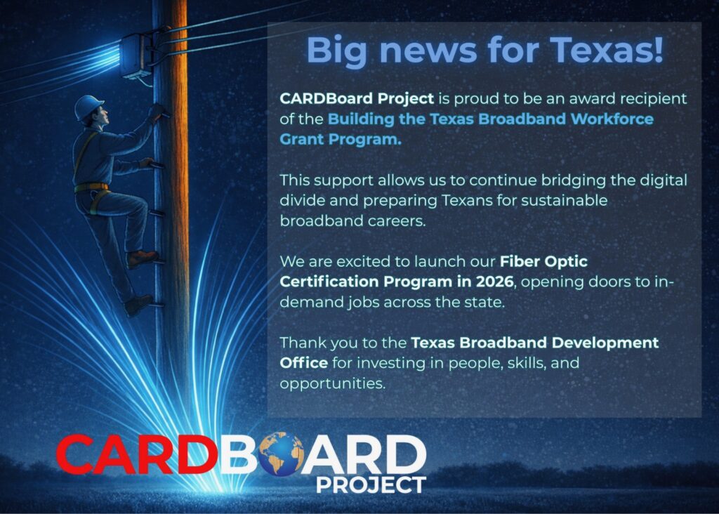 CARDBoard Project is proud to be an award recipient of the Building the Texas Broadband Workforce Grant Program.